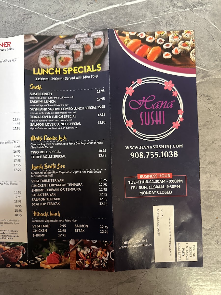 Welcome to Hana Sushi - South Plainfield, a delightful destination for sushi lovers located at 409 Hamilton Blvd. This hidden gem is renowned for its fresh ingredients and generous portion sizes, making it an ideal spot for a quick, healthy meal.